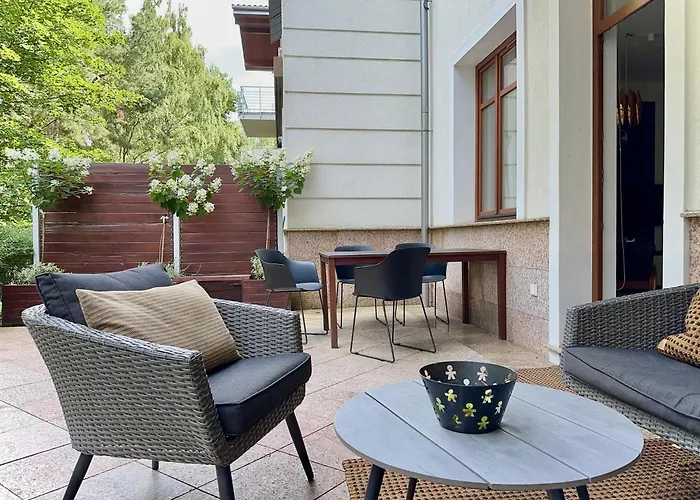 The 42 m^2 Apartament Relax Neptun Park Apartment is located about 10 minutes by car from Pier in Sopot and about 10 minutes by car from Westerplatte Peninsula. Guests can use private parking provided on site and Wi-Fi for business or leisure.